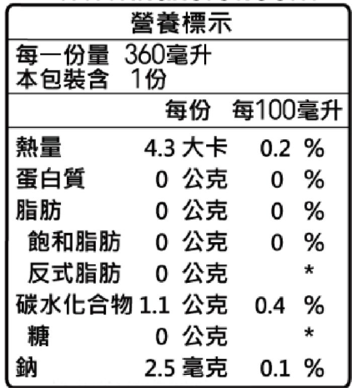 | 包裝內容/商品規格 | 360ml/瓶 |