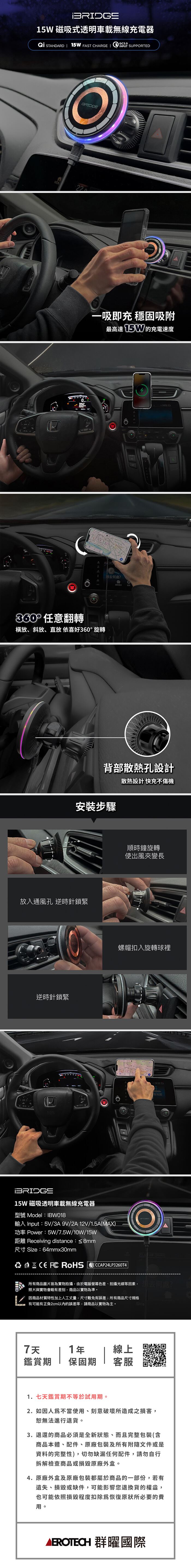 | 【商品名稱或型號】 | iBRIDGE 15W磁吸式透明車載無線充電器 |