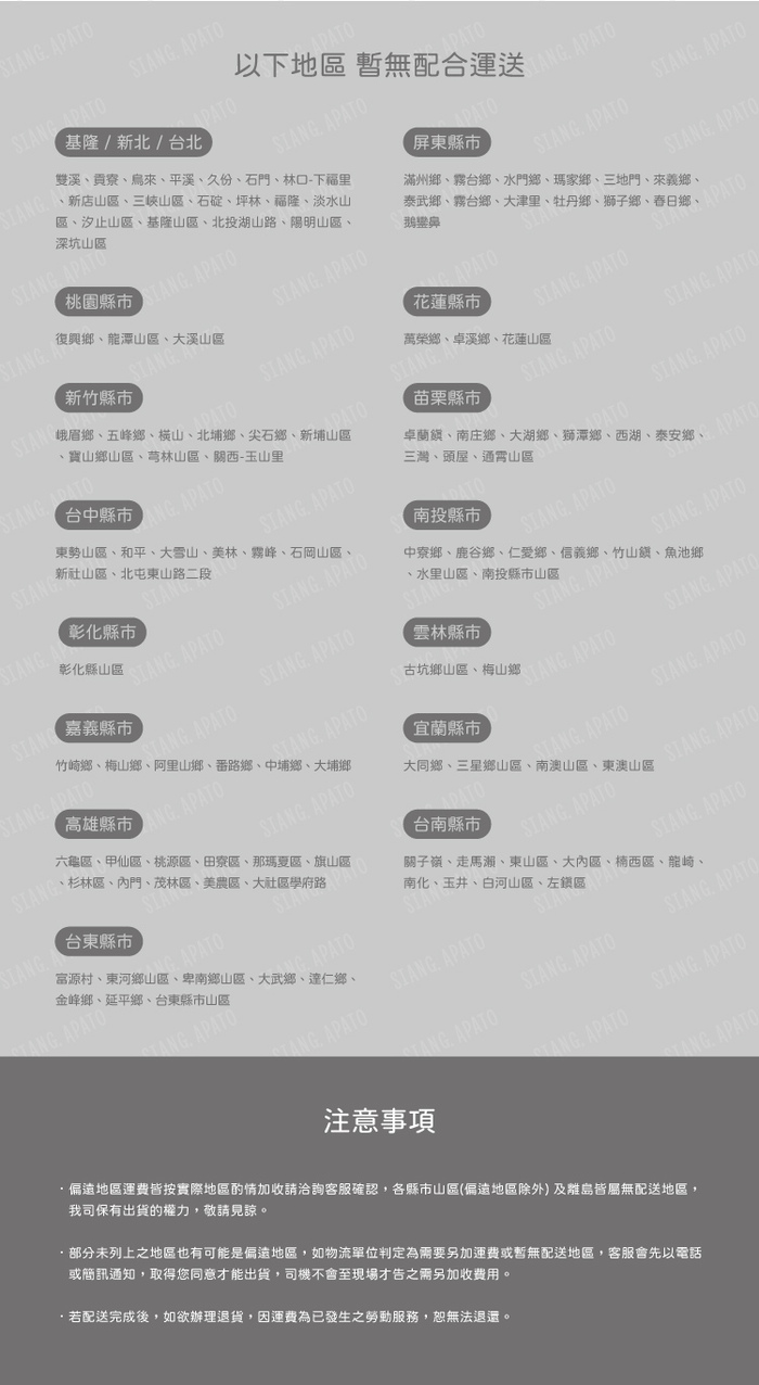 ※如遇颱風地震等天災或其他不可抗力因素(如:疫情、罷工)影響時,出貨時間將順延。