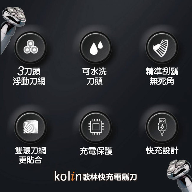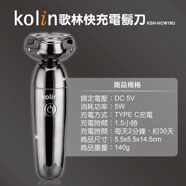 | 商品名稱 | 【KOLIN歌林】三刀頭快充式電鬍刀 KSH-HCW18U |