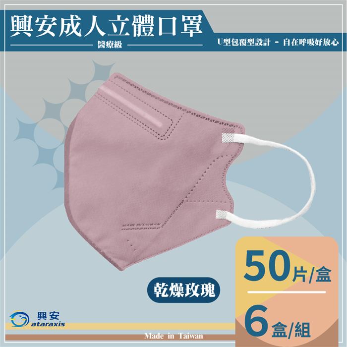 德冠 零觸感成人3D立體醫用口罩(50入/盒) - 乾燥玫瑰 x6盒