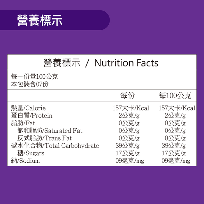 | 內容物(完整成份/食品添加物) | 台農57號地瓜、台農紫地瓜 |