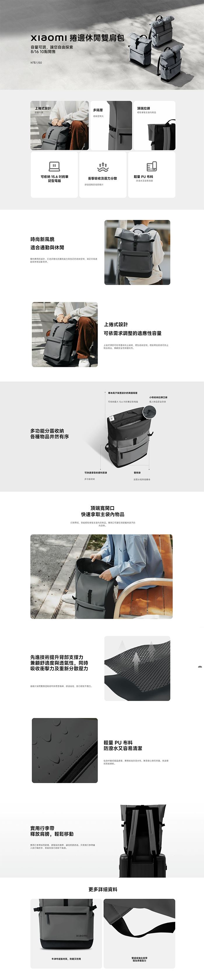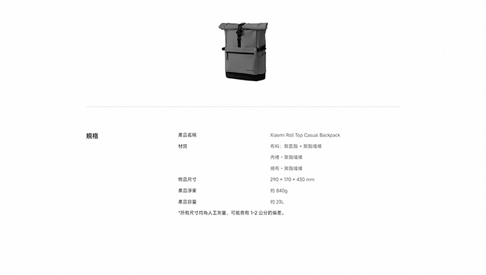 | 【商品名稱或型號】 | Xiaomi 捲邊休閒雙肩包 |