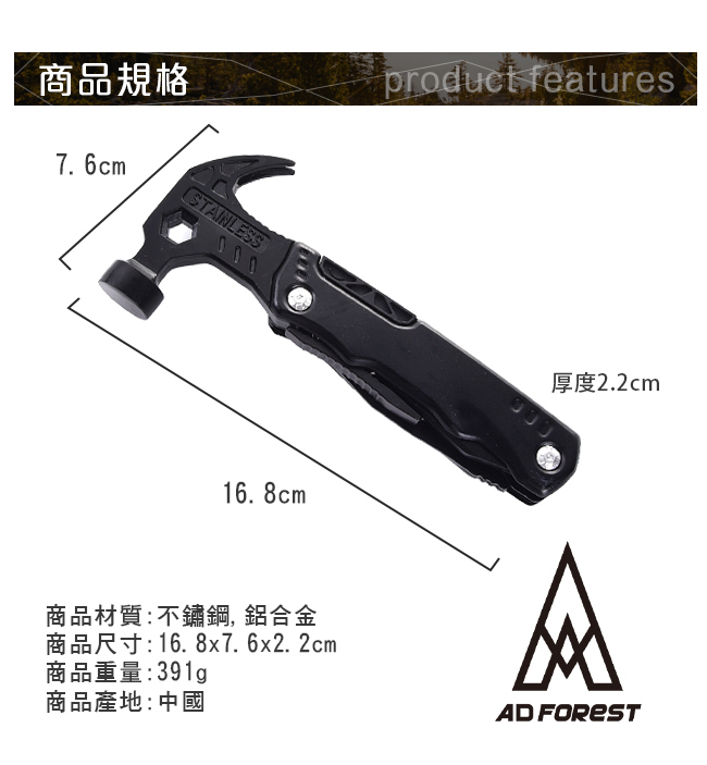 | 【商品名稱或型號】 | 【Ad-Forest】野外求生必備 硬派黑化萬用工具/戶外求生/野外求生 |