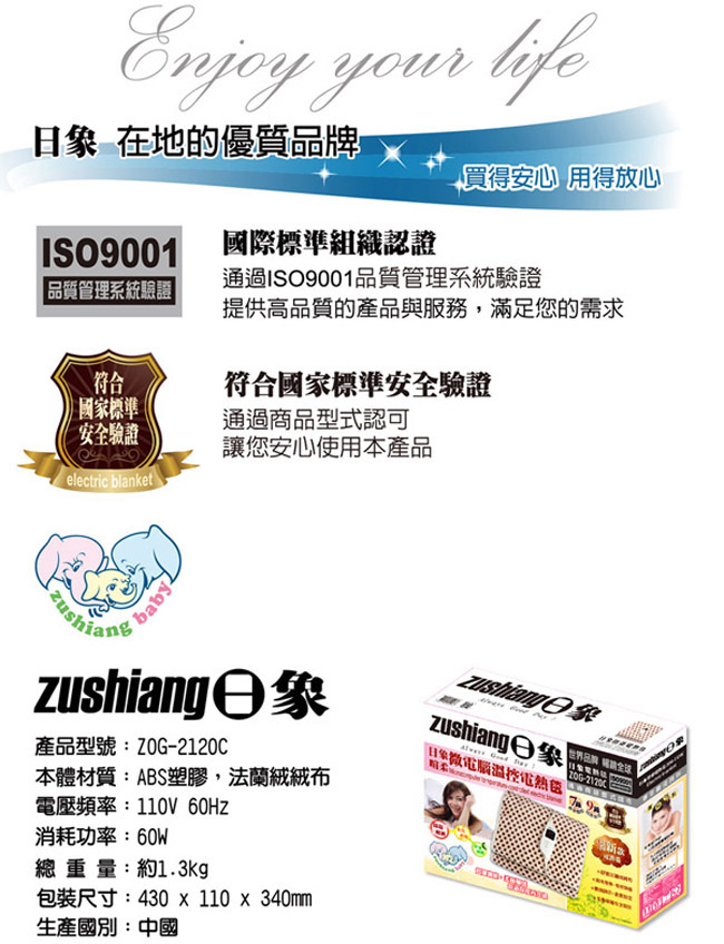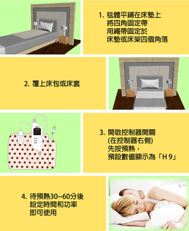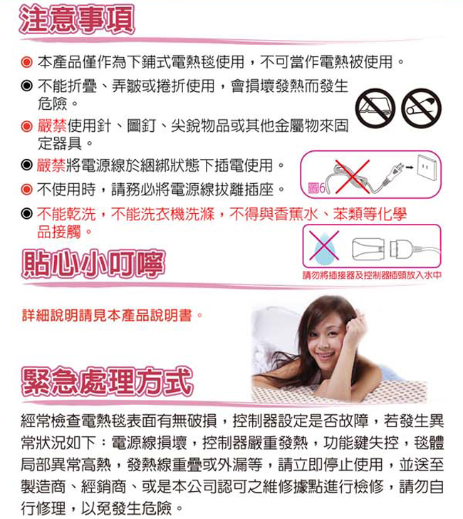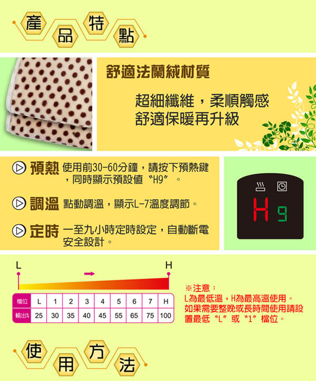 | 材質 | 法蘭絨絨布(電熱毯)、ABS塑膠(控制器) |
