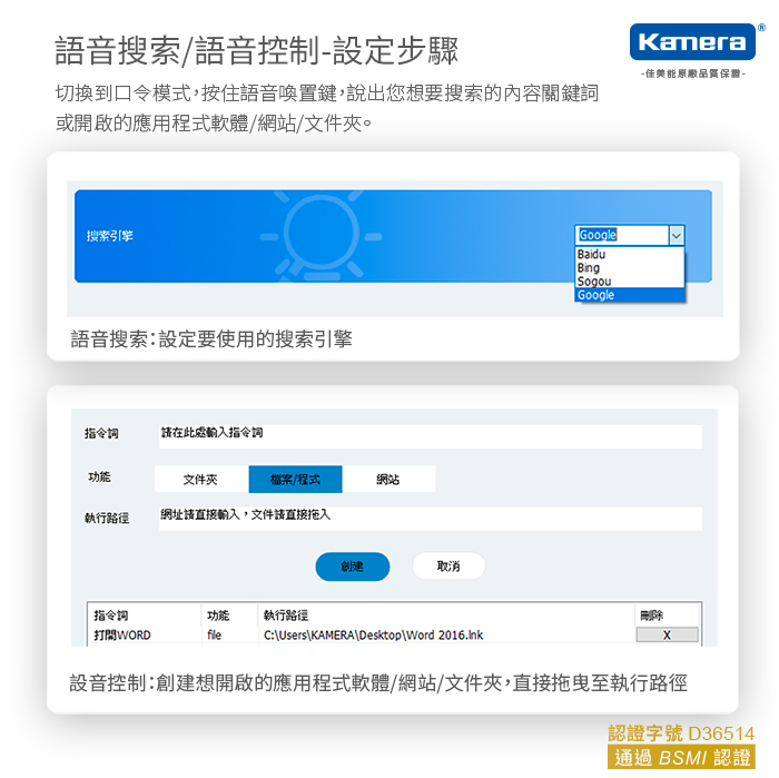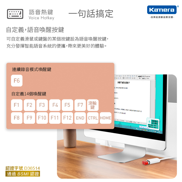 - 語音辨識距離約1米以內,語音錄入時會受環境噪音等有所影響。