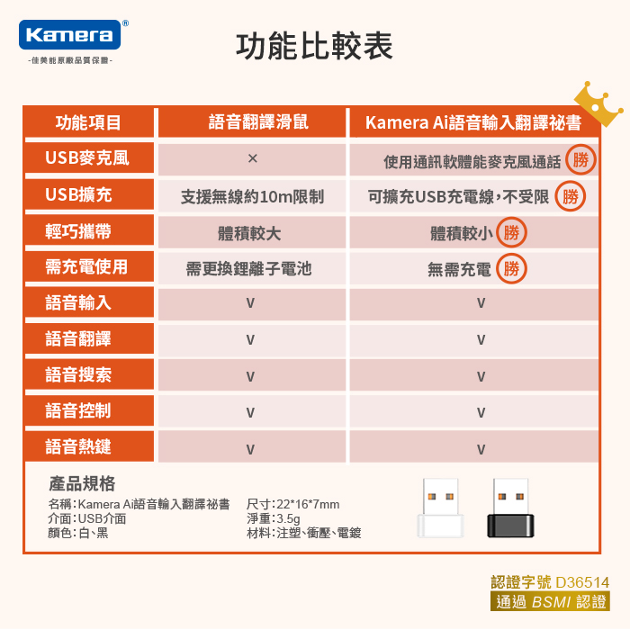 | 內容物 | USB(AI精靈)、說明書、延長線 |
