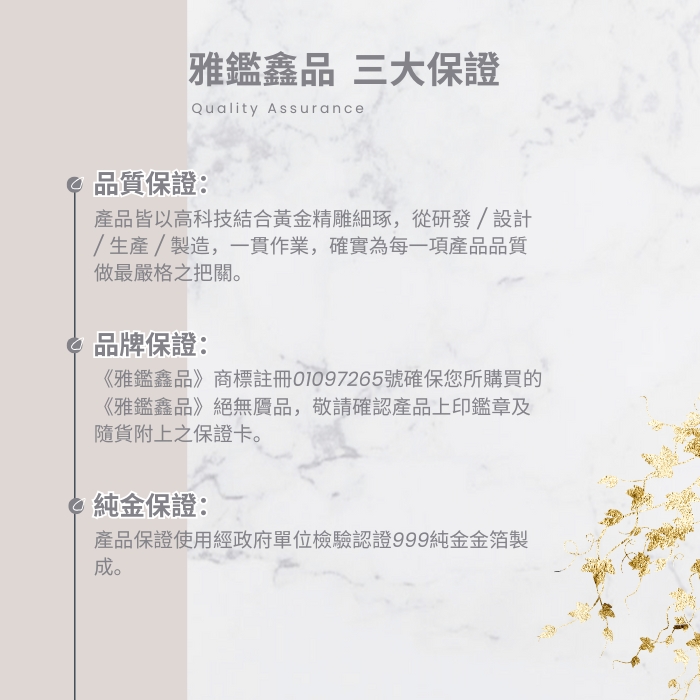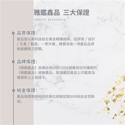 ▲商品由純金箔製作,為無法秤重的工藝品▲ 十天審閱期如需退換貨請保持商品完整,但商品必須為『全新未經使用』狀態 且完整包裝(如購買商品、附件、內外包裝、贈品等)。 |
