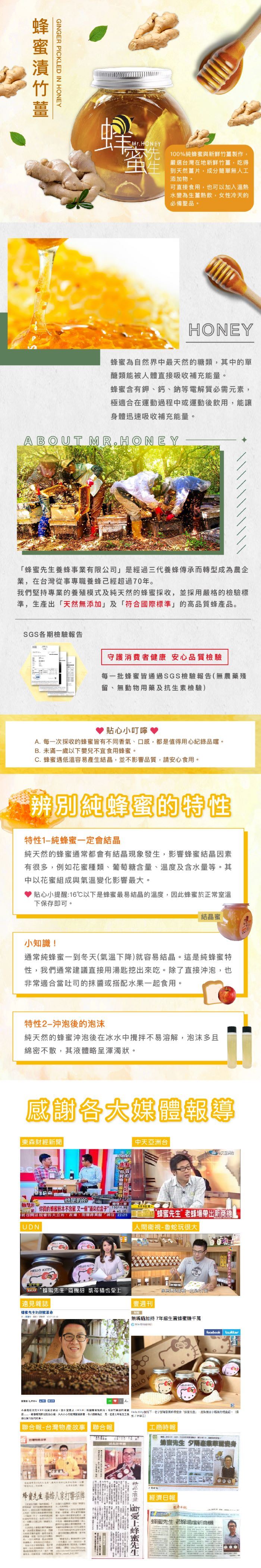 | 內容物(完整成份/食品添加物) | 純蜂蜜、薑、竹薑 |