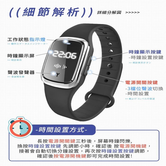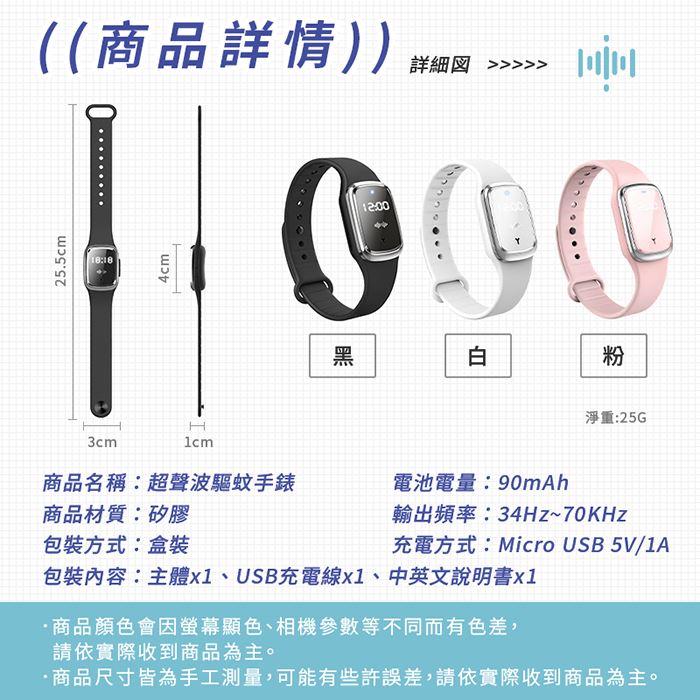 | 【商品名稱】 | 超聲波驅蚊手錶 (3色可選) |