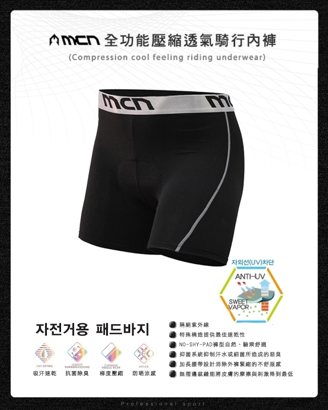 | 商品名稱 | 【韓國MCN】全功能壓縮/透氣騎行內褲(黑色S) |