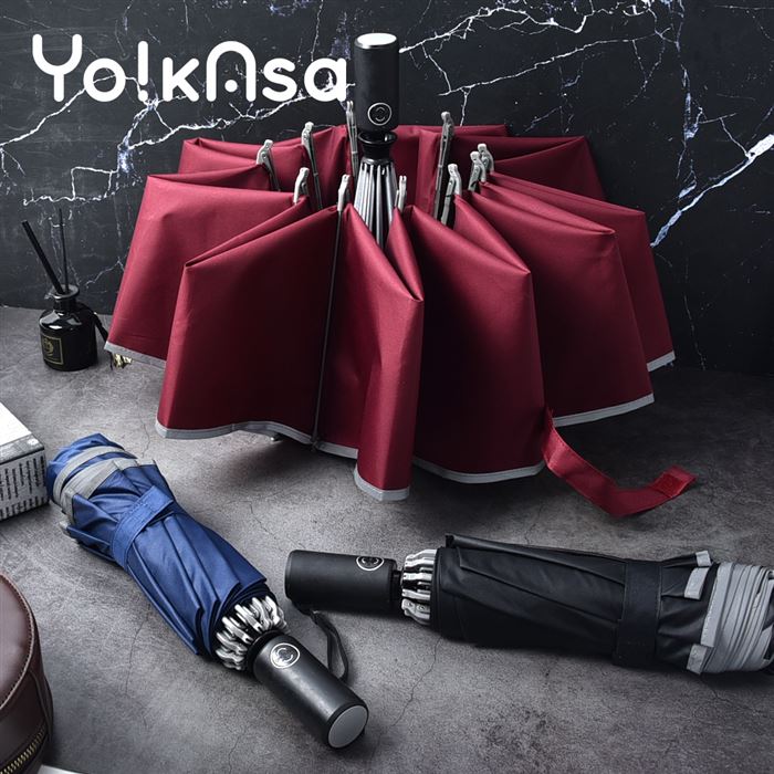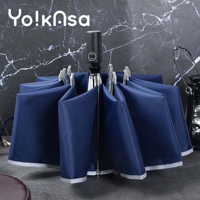 | 【商品名稱或型號】 | 【Yo!kAsa】安全反光條鋁合金10骨抗暴風自動反向傘-藍色 |