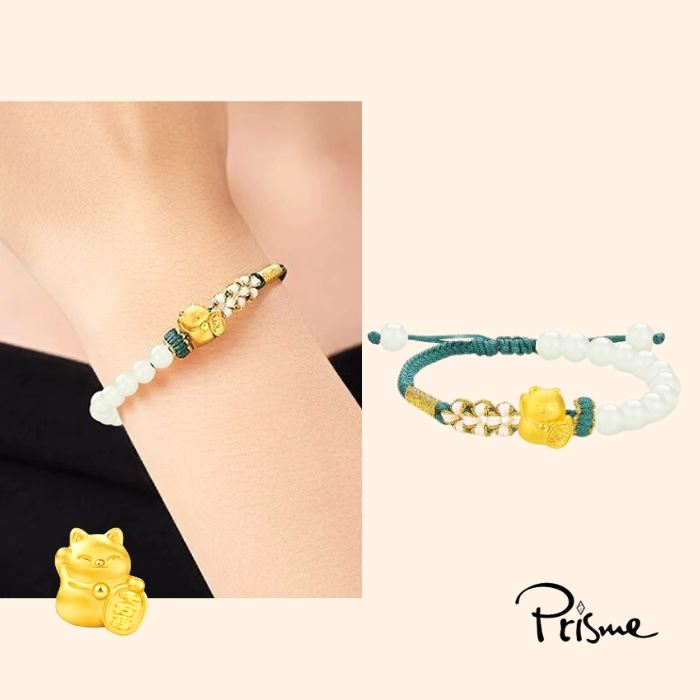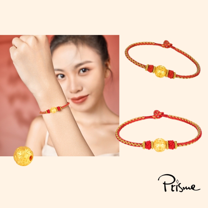| 商品名稱 | Prisme Gold Fortune紅色編織6mm財運珠黃金手環 |