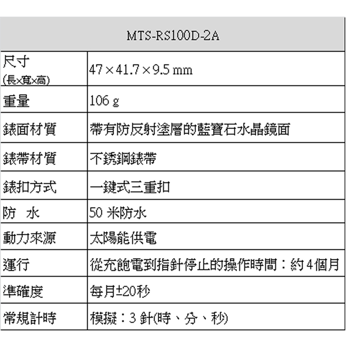 錶殼/錶帶材質:不鏽鋼、防刮藍寶石水晶玻璃/一鍵3折式表扣