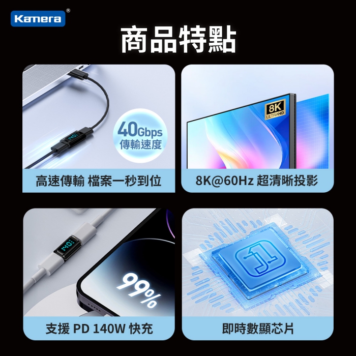 - 全功能USB 4.0,傳輸速率40Gbps、支援8K@60Hz影像傳輸。