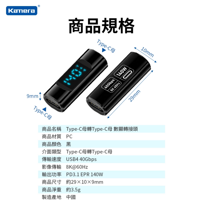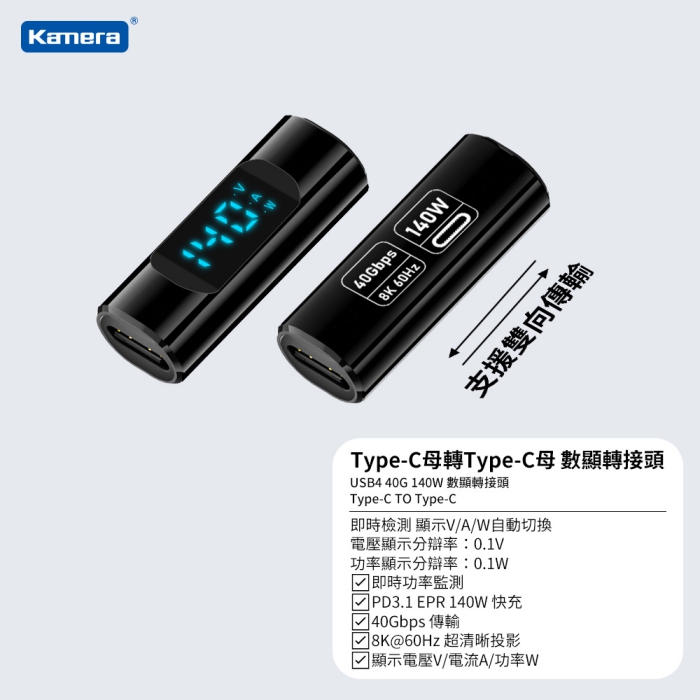 | 商品名稱 | Type-C母轉Type-C母 數顯轉接頭-140W/28V/5A |