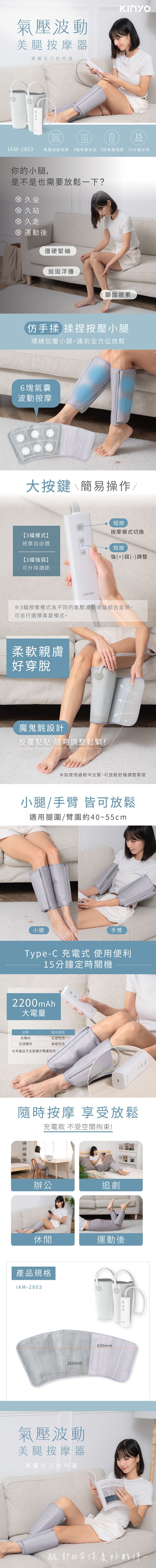 | 【商品名稱或型號】 | 【KINYO】氣壓波動美腿按摩器 IAM-2803 |