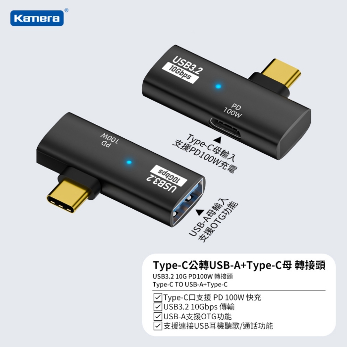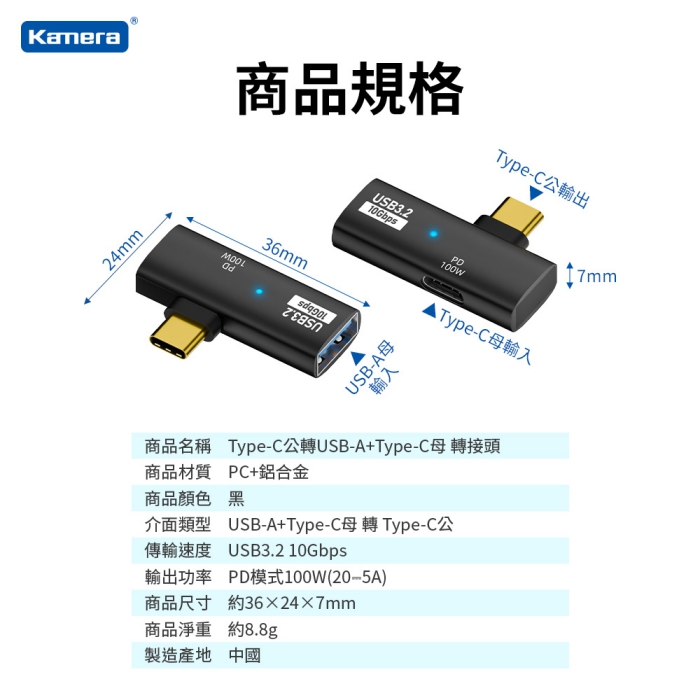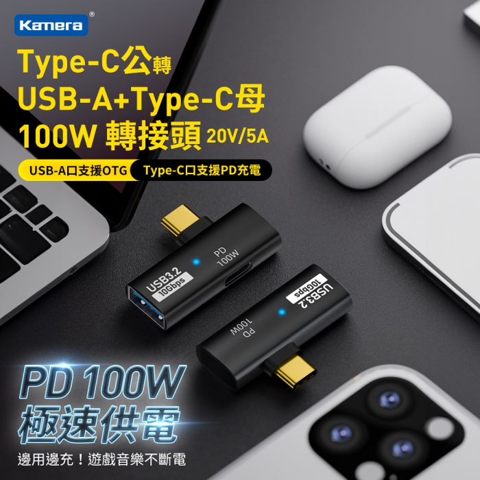 | 商品名稱 | Type-C公轉USB-A+Type-C母 轉接頭-100W/20V/5A |