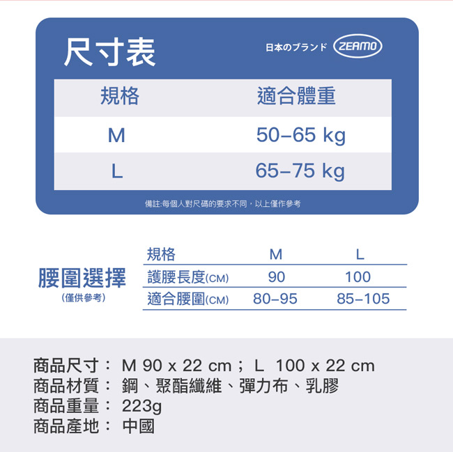 | 【商品名稱或型號】 | 【ZEAMO】日本透氣三重加壓支撐八字護腰帶(L) |