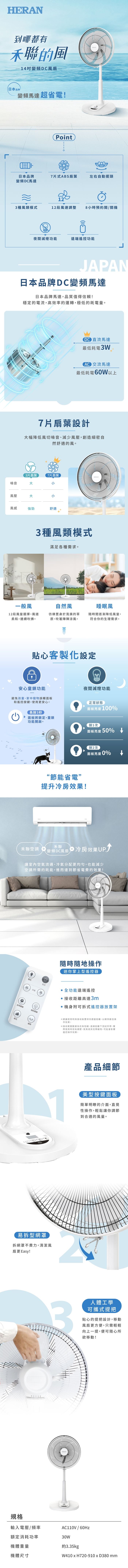| 商品名稱 | 【HERAN禾聯】 14吋智能7扇葉變頻DC節能遙控立扇HDF-14AH770 |