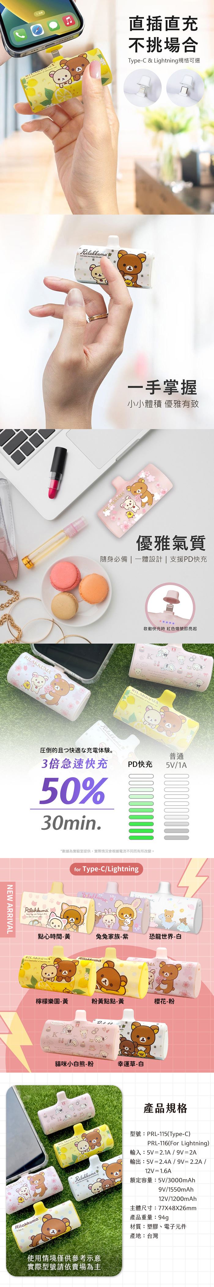 | 【商品名稱或型號】 | 【Rilakkuma拉拉熊】PD快充口袋隨身行動電源 直插行動電源(6000) |