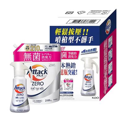 內容物:Attack ZERO 超濃縮噴槍型洗衣凝露 400公克 + 補充包 2100公克