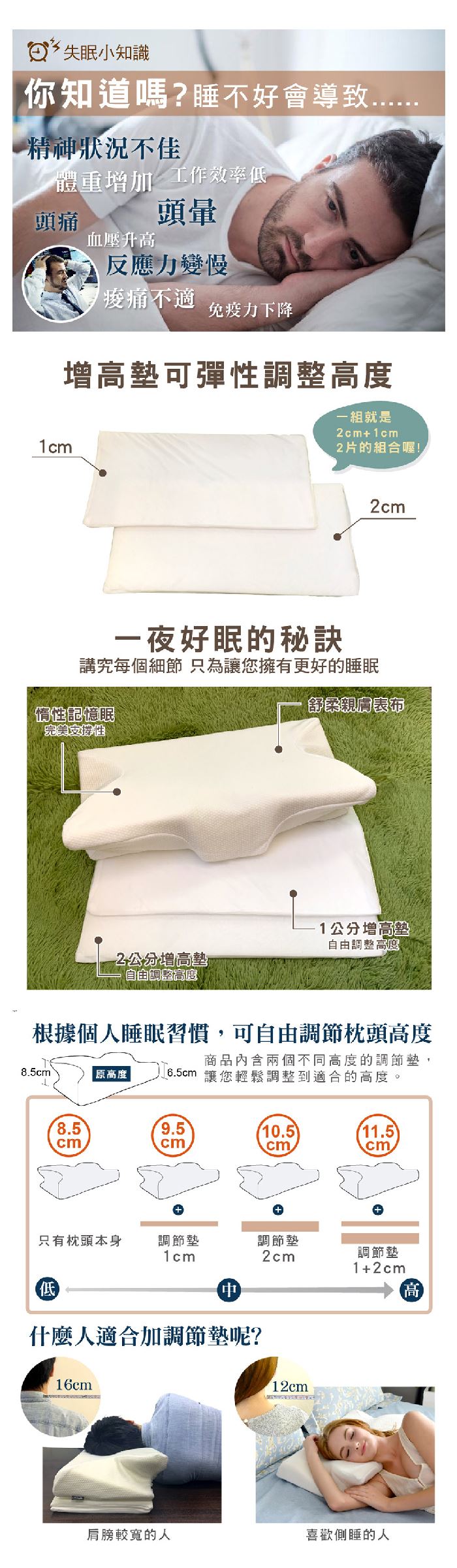 | 包裝內容/商品規格 | 1.涼感枕套+增高墊2+1cm 共3件 2.灰色枕套+白色枕套 共2件 3.灰色枕套+灰色枕套 共2件 4.白色枕套+白色枕套 共2件 |