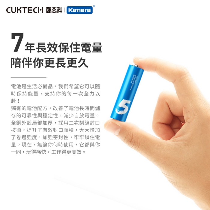- 7年長效鎖住電量,獨特電池配方減少低自放電。