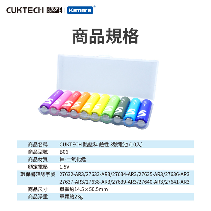 | 【商品名稱或型號】 | 【CUKTECH 酷態科】3號鹼性電池 [附贈電池收納盒] [30入組] 型號:B06 |