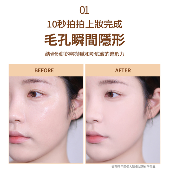 - 內含玻尿酸成分,保濕親膚不乾澀:如原生皮膚般輕薄服貼,就像第二層肌膚一樣舒適,一拍打造柔嫩妝感。