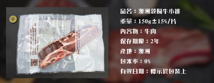 | 商品名稱 | 澳洲穀飼肩小排15片組(150g±15%/片) |