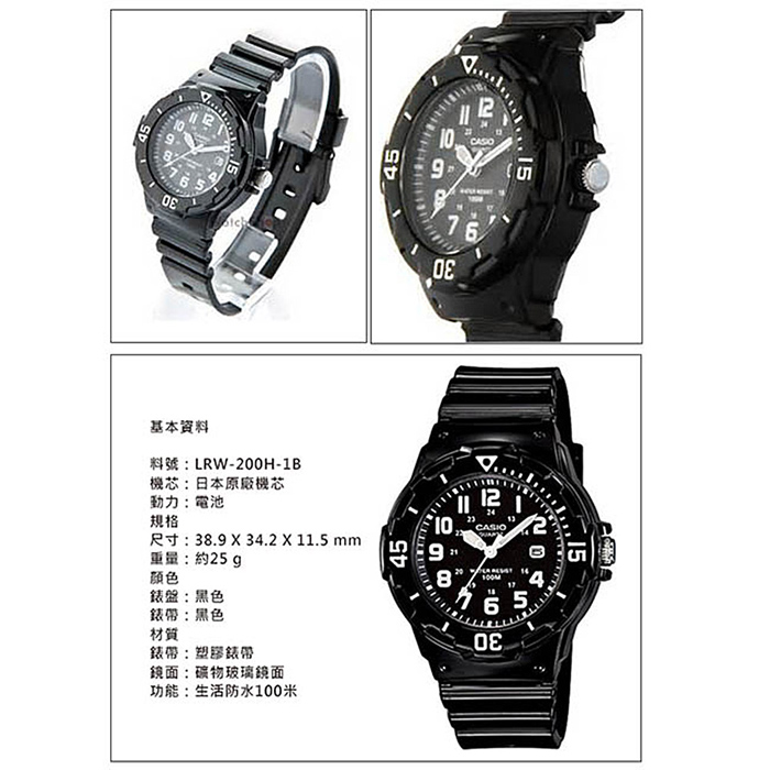 【CASIO卡西歐】新一代概念休閒錶 LRW-200H-1B