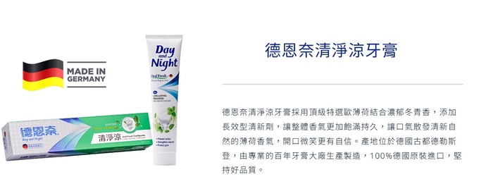 | 商品名稱/包裝內容規格 | 【Day And Night 德恩奈】潔牙雙星組(清淨涼156g1支+極淨細絲牙刷2支) |