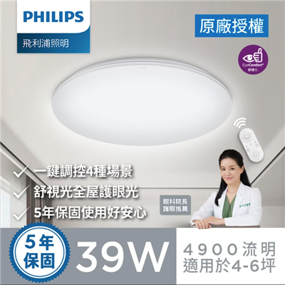 | 商品名稱 | 【Philips 飛利浦】39W 4-6坪Eye comfort LED 護眼吸頂燈 |