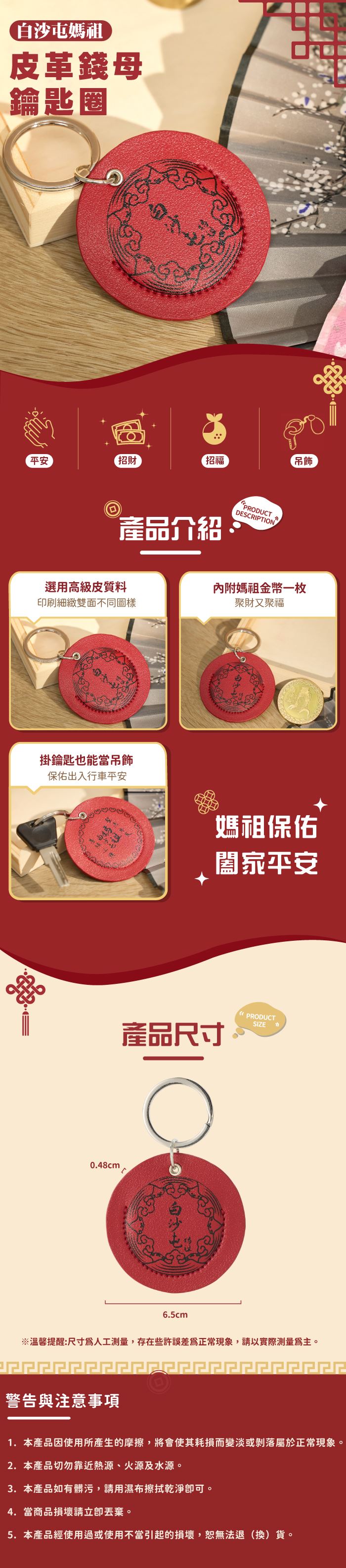 | 內容物 | 白沙屯媽祖皮革錢母鑰匙圈(金)*2 | |