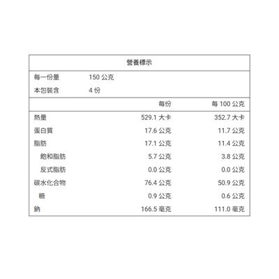 | 包裝內容/商品規格 | 150g*4入/包、共3包/箱 |