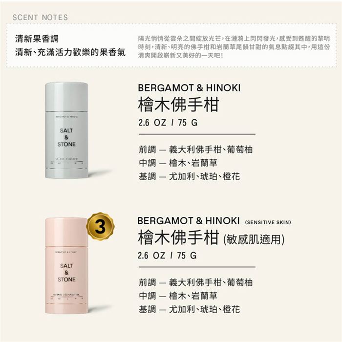 美國SALT&STONE 天然體香膏-檜木佛手柑(敏感肌適用) 75g x 1入 |