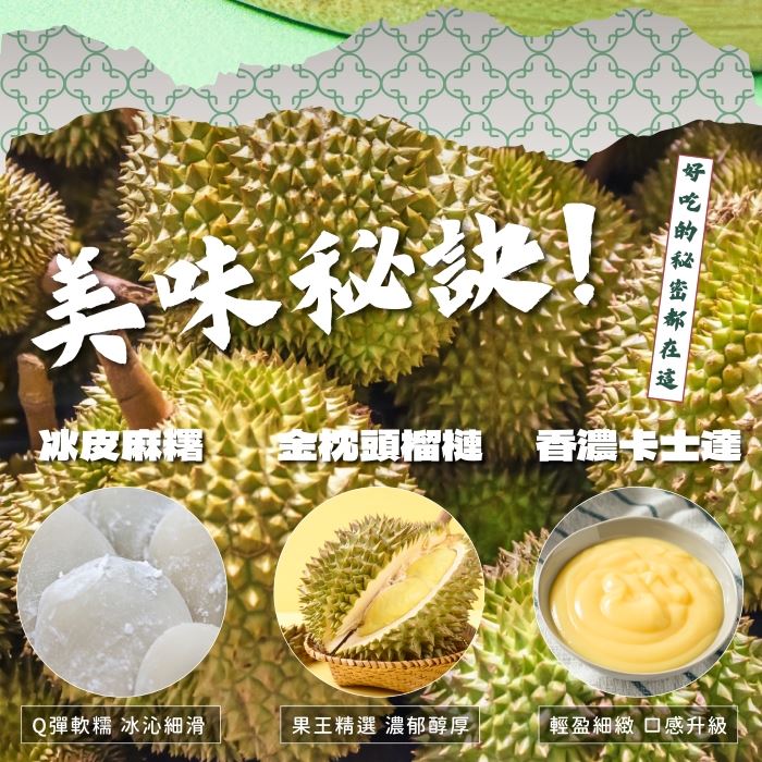 採用金枕頭榴槤品種,綿密細滑、甘醇回韻