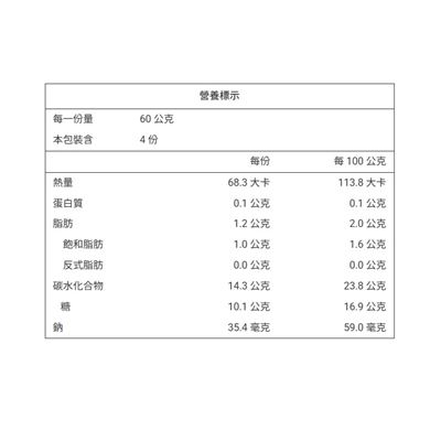 | 包裝內容/商品規格 | 60g*4入/包、共3包/箱 |