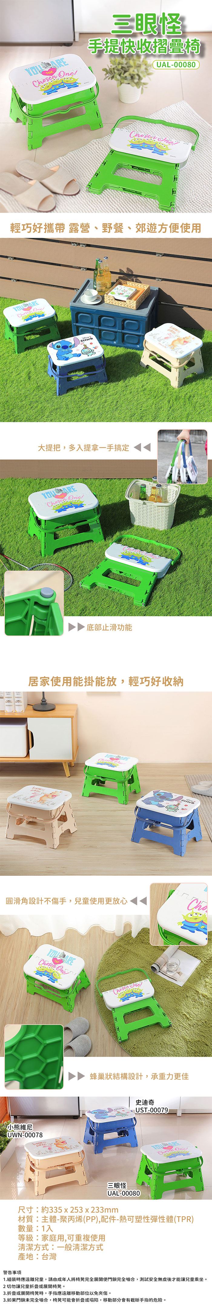 | 【商品名稱或型號】 | 【Disney 迪士尼】台灣製手提快收摺疊椅 - 三眼怪 |