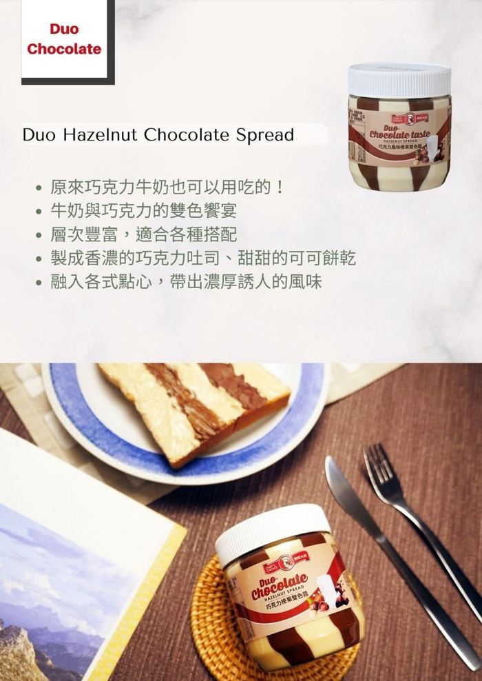 獨特的雙色設計,將香醇的榛果巧克力與濃郁奶香完美結合,帶來雙重口感的極致體驗。無論是搭配吐司、餅乾,還是各式點心,都能瞬間提升美味層次。