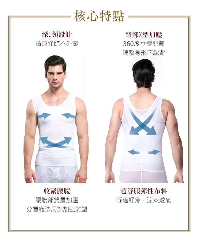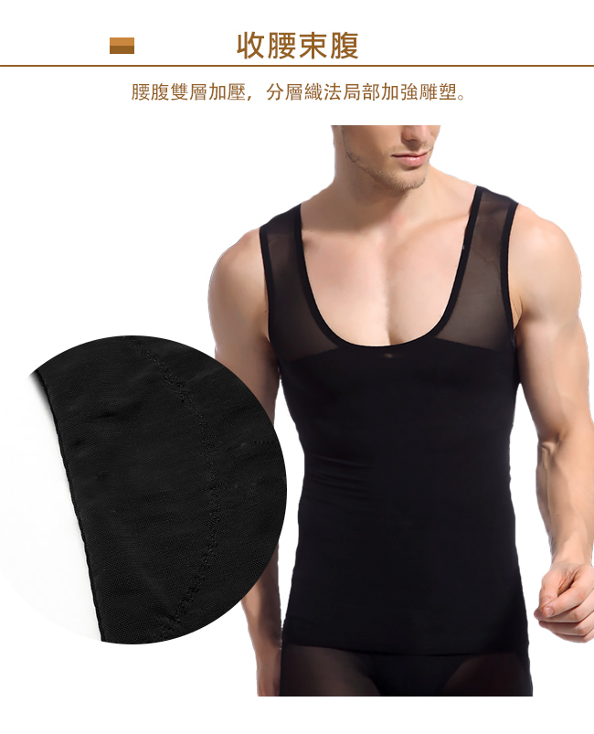 | 商品名稱 | 【Charmen】高機能強塑腰腹版背心 男性塑身衣(黑色L) |
