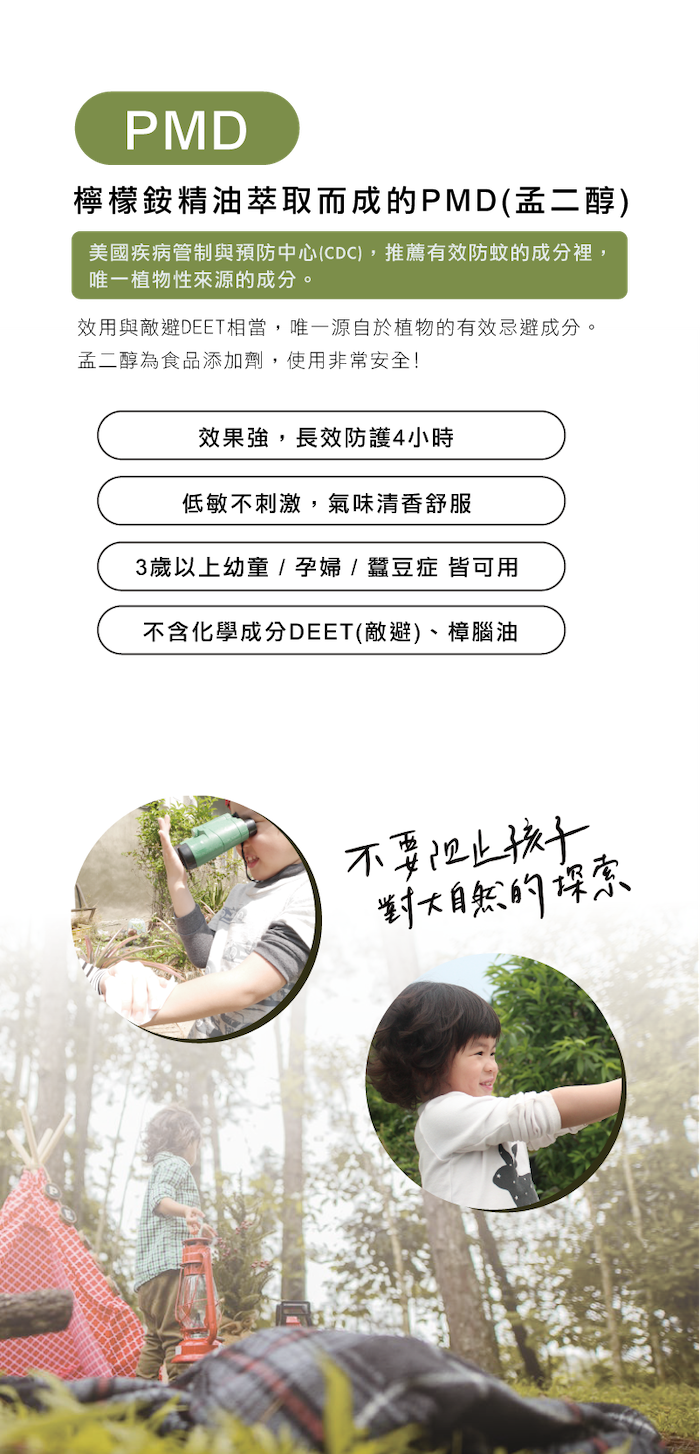 | 天然草本精油 | 驅蚊增添清新香氣 |