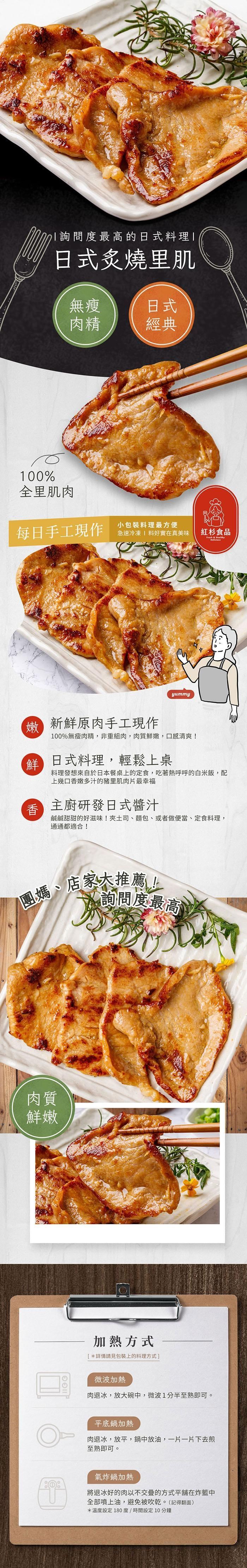 | 商品名稱 | 紅杉宅料理-日式炙燒里肌(日式炙燒烤肉片)150克/包-10包/組 | |