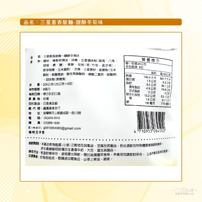| 商品名稱 | 三星蔥香脆麵-鹽酥冬筍味(200g)-12包組 |