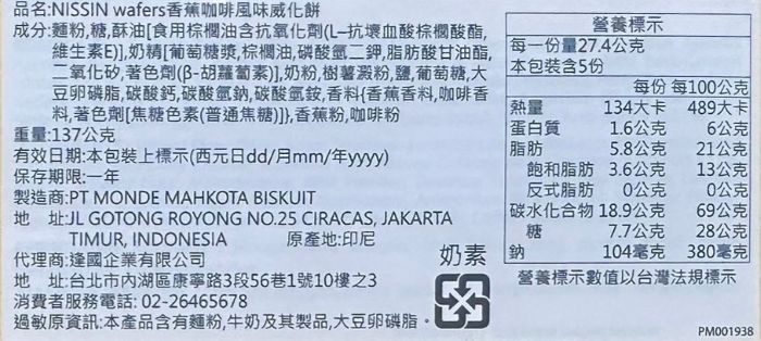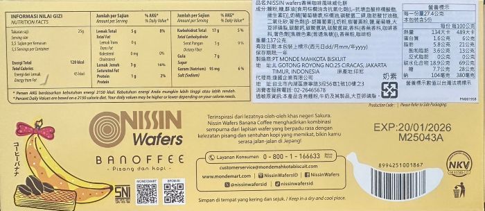 | 商品名稱 | NissiN wafers香蕉咖啡風味威化餅 |