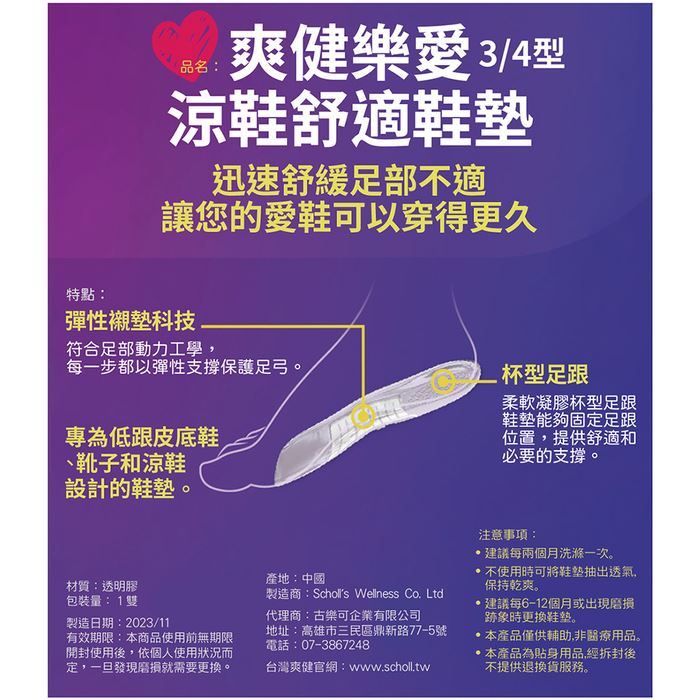 | 內容物 | 樂愛涼鞋舒適鞋墊(3/4型) |