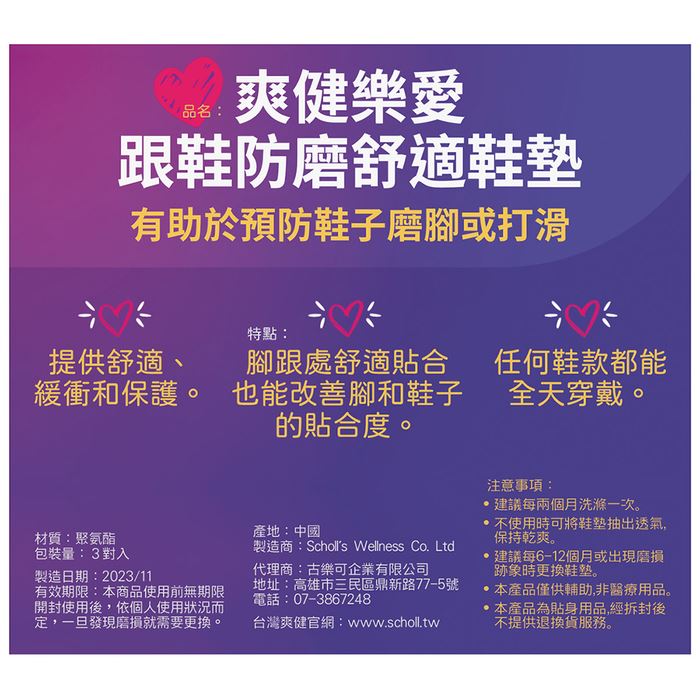 | 【商品名稱】 | 【Dr.Scholls 爽健】樂愛跟鞋防磨舒適鞋墊(3對) | |