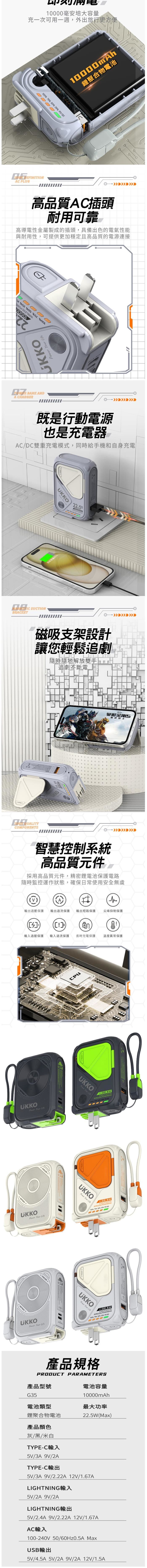 | 【商品名稱或型號】 | 【UKKO】急速 22.5W 磁吸行動電源(10000mAh) |