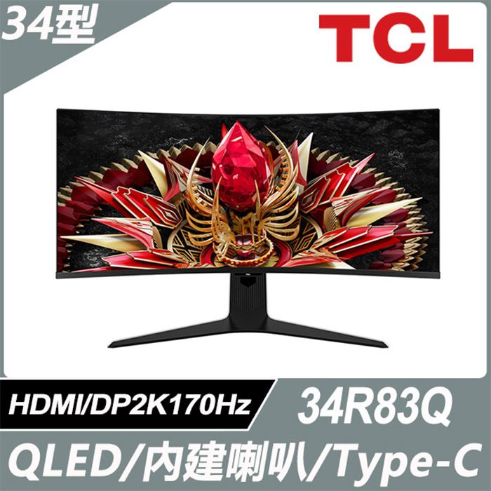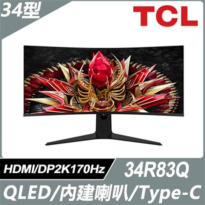 【TCL】34吋 34R83Q QD-Mini LED曲面電競顯示器 產品類型 :顯示器 |